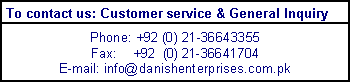 Copyright(c) - 2007 Danishenterprises.com.pk All rights reserved. designed & maintained by IT Department DANISH ENTERPRISES